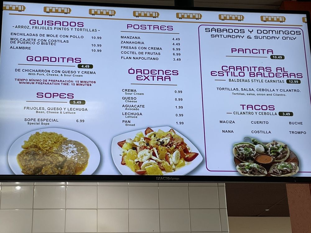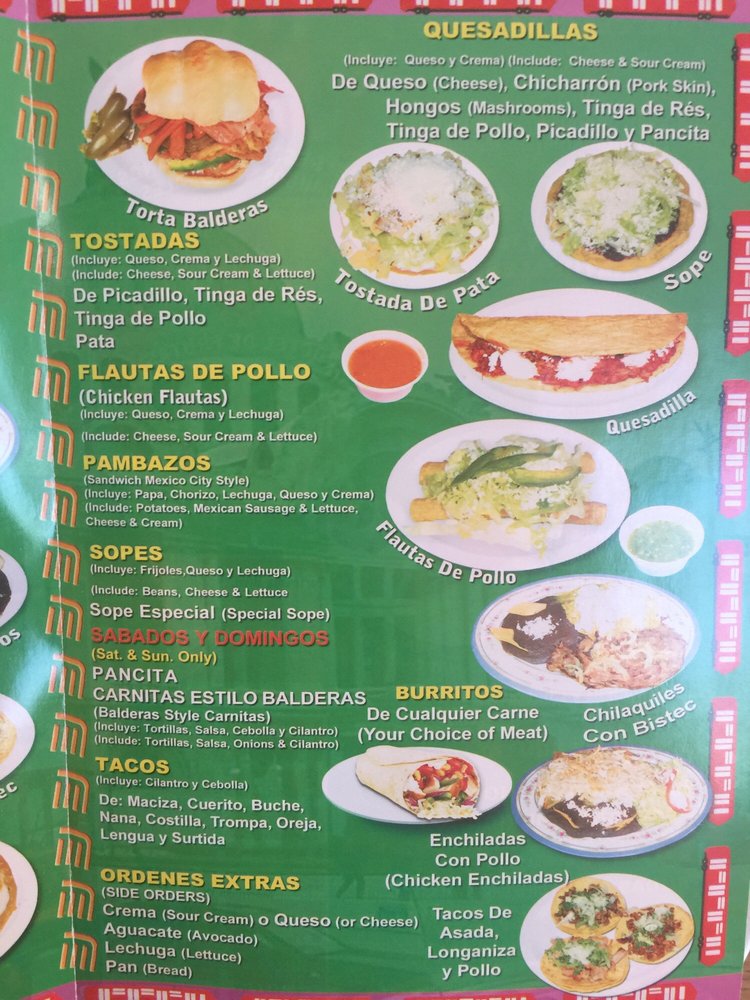 Metro Balderas Restaurant Menu
